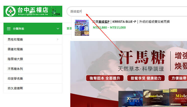 1. 進入官方藥局網站:搜尋「巔峰藍P」商品頁面