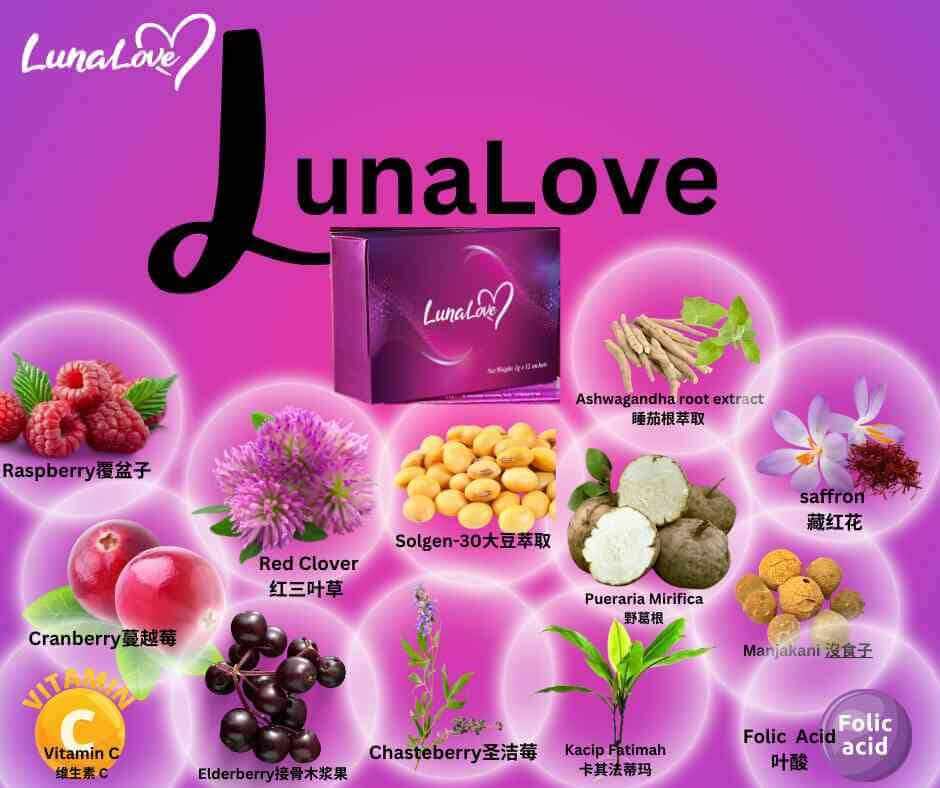 Lunalove 女用B糖以女性身心平衡為核心出發點,配方融合多種經科學驗證與傳統應用的天然植萃,達到溫和調理、生理活化與情緒舒緩的協同作用。以下為其關鍵成分組合: