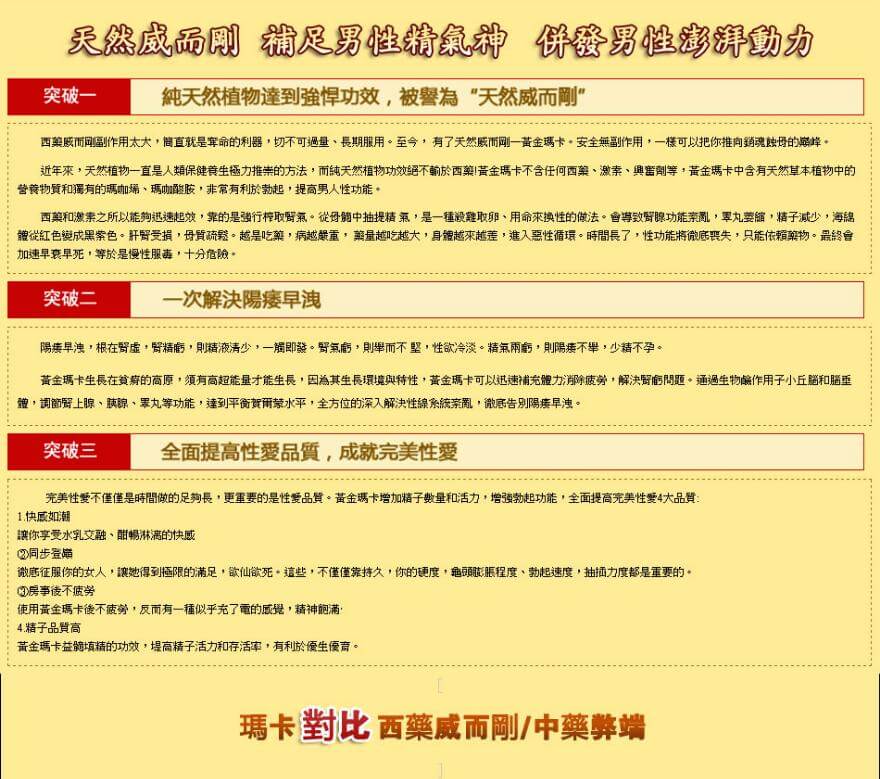 A:不同於威而鋼等藥物,瑪卡屬於營養型保健品,不依賴性刺激即可發揮體質調理與激素調節作用。