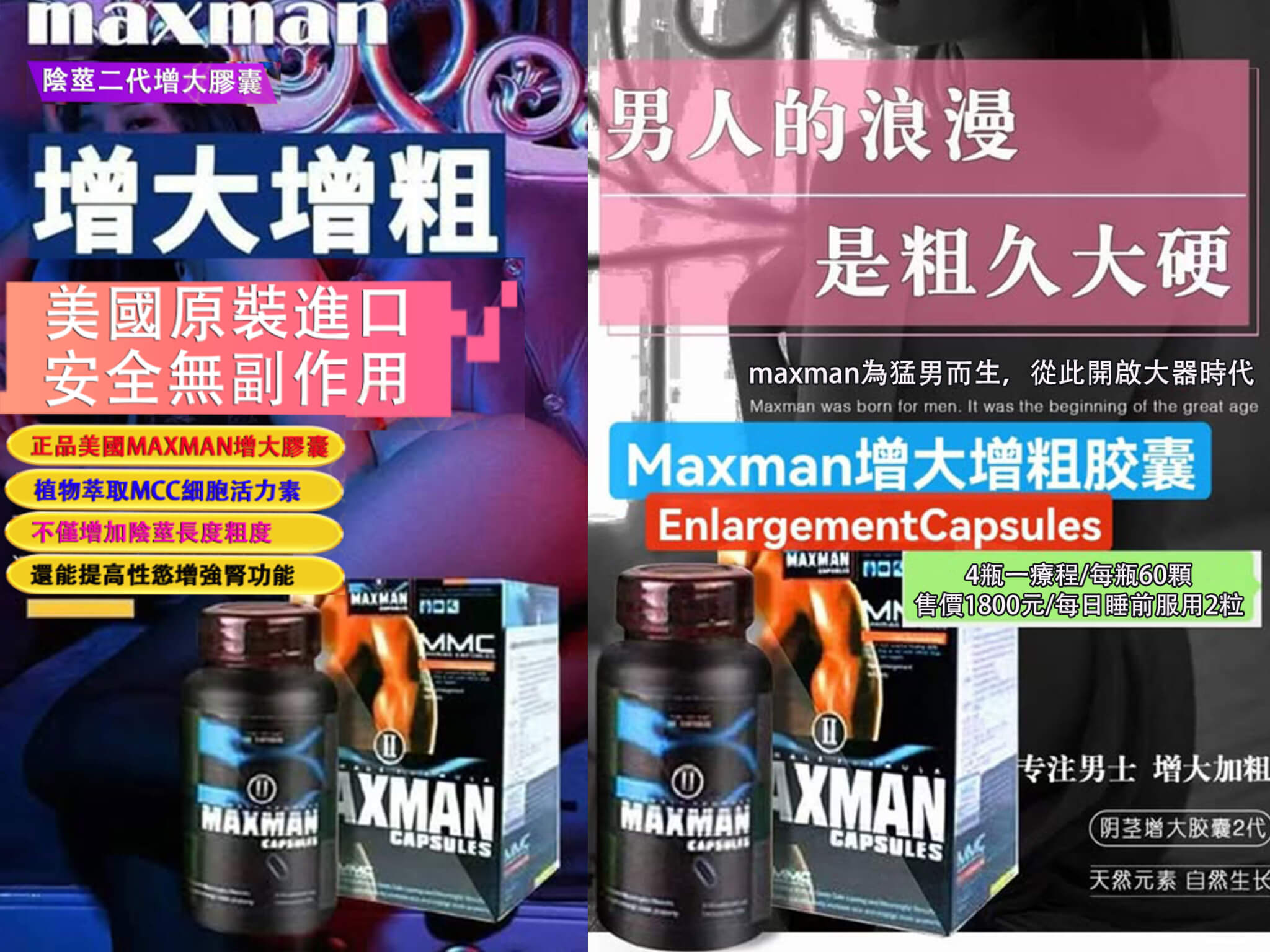 MAXMAN增大丸系列以天然無副作用為研發理念,花費近30年時間對中草藥等所有天然成分進行剖析,挑選出極具健康且有效的成分,進而研發出美國maxman增大丸,並以最優成績通過美國NCCLS委員會的各項認證,目前已經有150萬顧客使用了該產品,對其增大效果、延時效果、助勃效果有至高的評價,全球僅此一款!其他產品無法與之抗衡!Maxman增大丸的功效,其主要成分是天然植物提取物,不含任何激素和化學成分,因此安全性非常高。它可以促進血液循環,提高陰莖的血液供應,從而增強勃起能力和持久時間。此外,Maxman增大丸還可以增加陰莖的長度和周長,改善性生活質量,提高男性自信心和自尊心。 總的來說,Maxman增大丸是一種非常優秀的男性增強藥物,對於想要提高性能力和陰莖大小的男性來說是不錯的選擇。