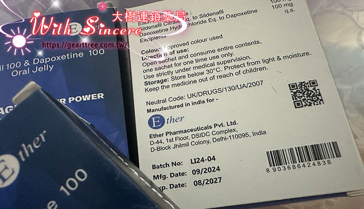 成分 Sildenafil 100mg + Dapoxetine 100mg