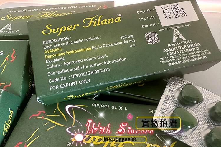 印度綠水鬼 Super Filana 是Ambitree藥廠推出的最新一代壯陽雙效產品。它結合了 Avanafil(阿伐那非)和 Dapoxetine(必利勁),這兩種成分具有助勃和延時的雙重作用,特別適合勃起困難和早洩的男性使用。Super Filana 綠水鬼不僅效果快速,吸收迅速,而且副作用極低。這款產品自上市以來,已迅速成為市場上最受歡迎的雙效壯陽產品之一,其效果穩定且性價比極高。