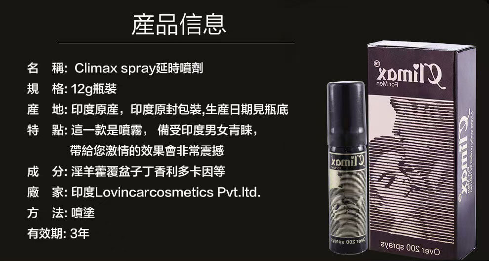 商品名稱: Climax印度神油持久液 / Climax延時噴霧