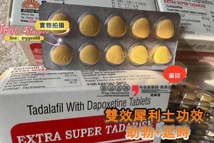 雙效犀利士(Super Tadarise)是一種治療陽痿(ED)和早洩(PE)的藥物,它具有兩種不同成分的組合,可以同時作用於改善勃起功能和控制射精。具體來說,它包括犀利士(Tadalafil)和必利勁(Dapoxetine)這兩個成分,具有以下作用:
