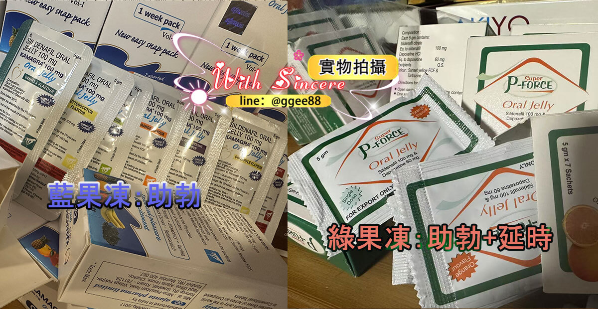 • 雙效綠果凍:100mg 西地那非 + 60mg 達泊西汀(具助勃+增硬+延時效果)